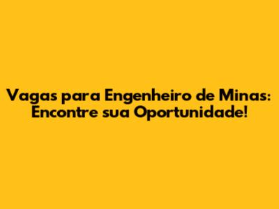 Vagas Para Engenheiro De Minas: Encontre Sua Oportunidade!