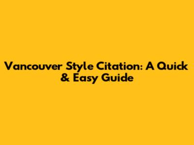 Vancouver Style Citation: A Quick & Easy Guide