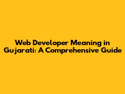 Web Developer Meaning In Gujarati: A Comprehensive Guide