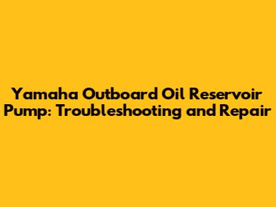 Troubleshooting Your Yamaha Outboard Oil Reservoir Pump