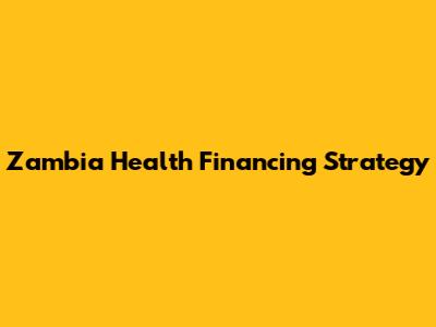 Zambia Health Financing: A Comprehensive Strategy